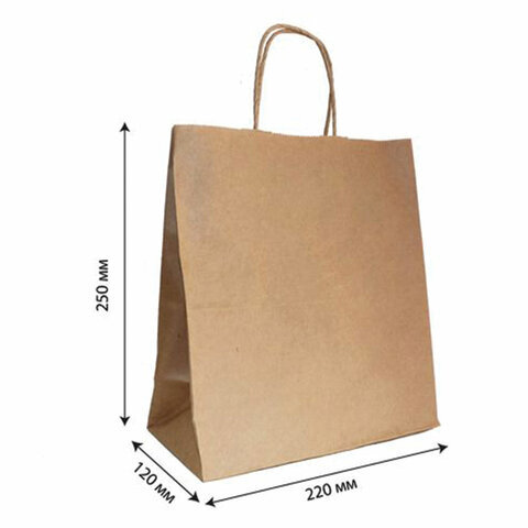 Крафт-пакет бумажный 22х12х25 см, крученые ручки, плотность 90 г/м2