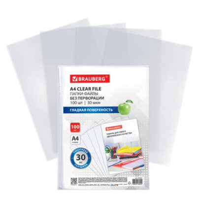 Папки-файлы без перфорации BRAUBERG предназначены для хранения и защиты бумажных документов от загрязнения и механических повреждений.