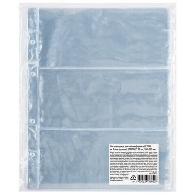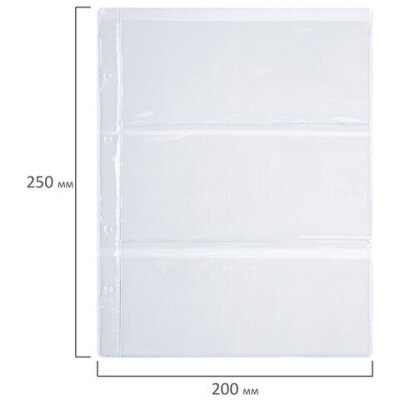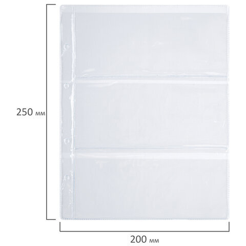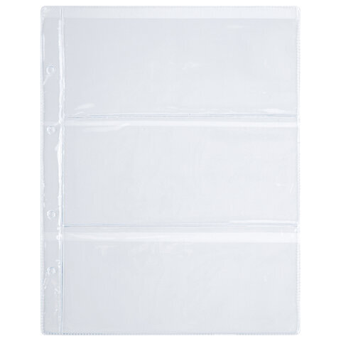 Листы-вкладыши для альбома "OPTIMA" на 3 боны (купюры), КОМПЛЕКТ 10 шт., 200х250 мм, ПВХ, STAFF, 238082