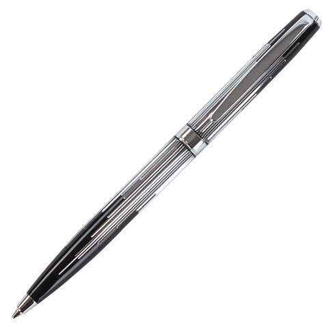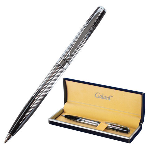 Ручка подарочная шариковая GALANT "Offenbach", корпус серебристый с черным, хромированные детали, пишущий узел 0,7 мм, синяя, 141014
