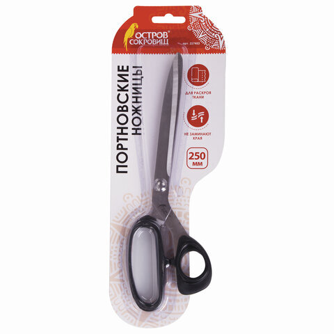 Ножницы портновские ОСТРОВ СОКРОВИЩ "КЛАССИК", 250 мм, черные, блистер, 237453