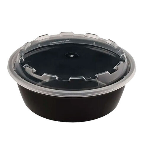 Контейнер одноразовый 530 мл, С КРЫШКОЙ, круглый, диаметр 152 мм, черный/прозрачный, ПП, ВЗЛП, 1264Ч