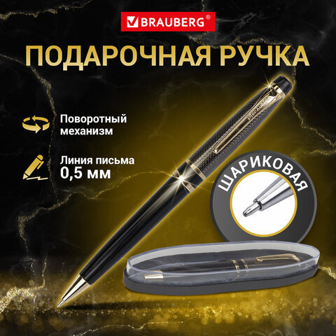 Ручка подарочная шариковая BRAUBERG Sonata, СИНЯЯ, корпус золотистый с черным, линия письма 0,5 мм, 143483