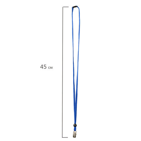 Лента для бейджей, 45 см, с безопасным сцеплением, с клипом, СИНЯЯ, BRAUBERG, 235725