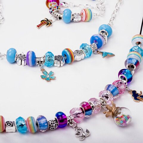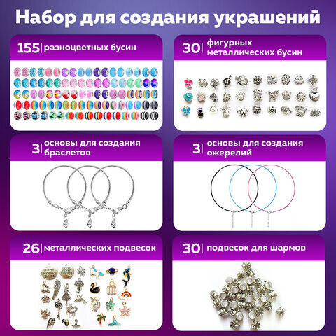| Комплектация | бусины, основа для украшений, пластиковый бокс, шармы |