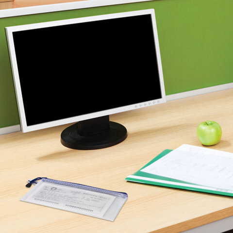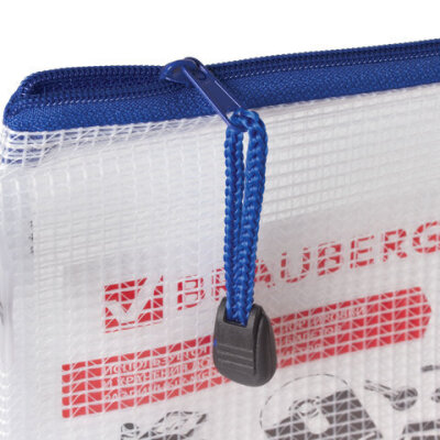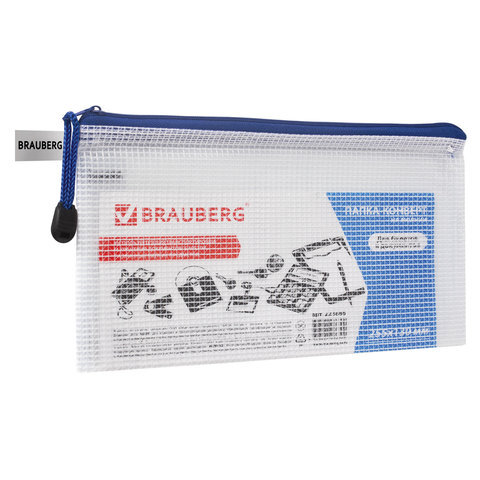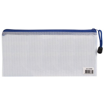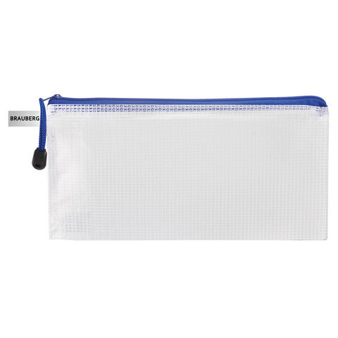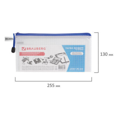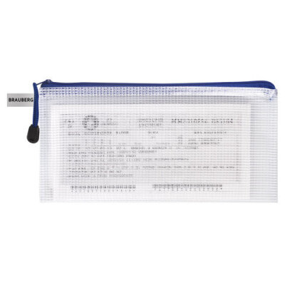Папка-конверт на молнии МАЛЫЙ ФОРМАТ (255х130 мм), молния ассорти, сетка, прозрачная, 0,2 мм, BRAUBERG "Segment", 223888