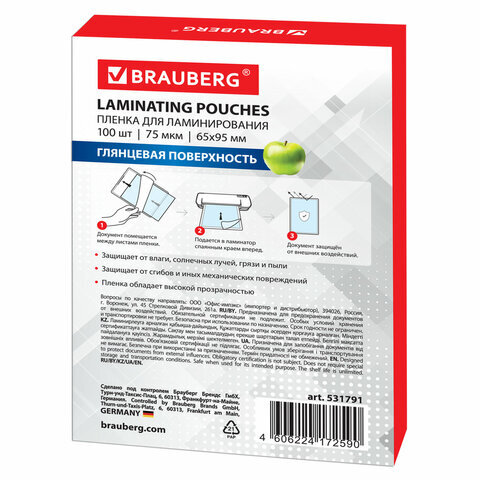 Пленка для ламинирования BRAUBERG надежно защитит документы от влаги, пыли, воздействия УФ-лучей и других внешних факторов.