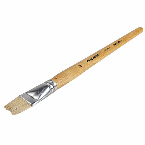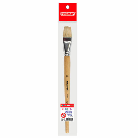 Кисть ПИФАГОР, ЩЕТИНА, плоская, № 22, деревянная лакированная ручка, пакет с подвесом, 200880