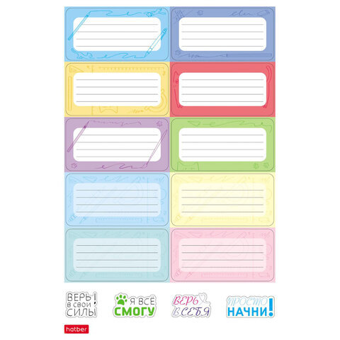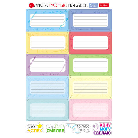 Наклейки КЛАССИКА для маркировки школьных принадлежностей, НАБОР 4 листа, 56 наклеек, HATBER, 4Н5н