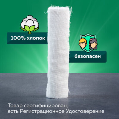 Бинт медицинский марлевый, стерильный в индивидуальной упаковке изготовлен из впитывающего материала - марли медицинской, плотностью 36 г/м2.