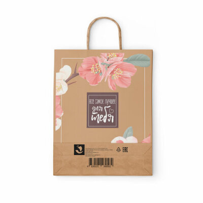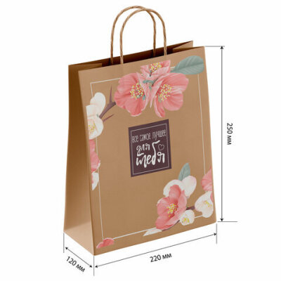 Крафт-пакет бумажный "Для тебя" 22х12х25 см, с кручеными ручками, плотность 80 г/м2, 110562