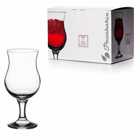 Бокал для коктейлей на ножке, 380 мл, КОМПЛЕКТ 6 штук, стекло, PASABAHCE "БИСТРО", фирменная подарочная упаковка, 44872