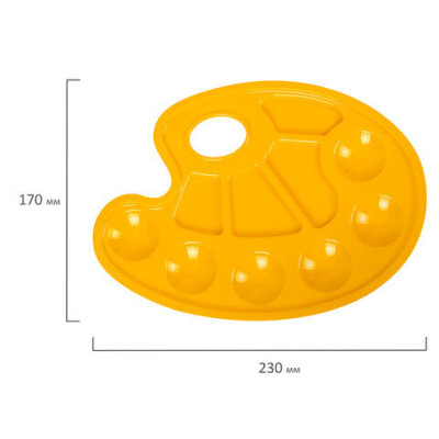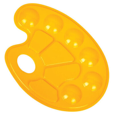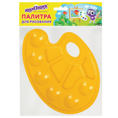 Палитра для рисования ЮНЛАНДИЯ желтая, овальная, 6 ячеек для красок и 4 для смешивания, европодвес, 227807