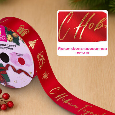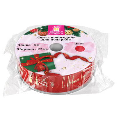 Новогодняя лента ЗОЛОТАЯ СКАЗКА предназначена для упаковки и декорирования подарков, для оформления праздничных композиций, кондитерских наборов, украшения интерьера.