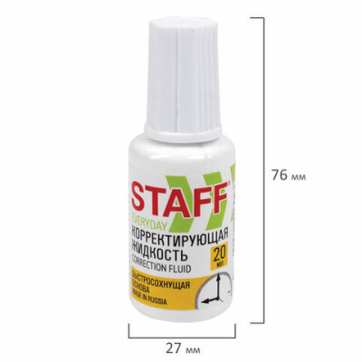 Корректирующая жидкость STAFF "EVERYDAY" быстросохнущая, 20 мл, с кисточкой, Россия, 224878