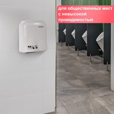 Сушилка для рук SONNEN HD-165, 1650 Вт, пластиковый корпус, белая, 604191