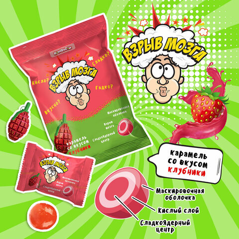 Карамель ВЗРЫВ МОЗГА со вкусом клубники 15 г, 5 конфет в пакете, КОНФИТОЙ, КТ93243