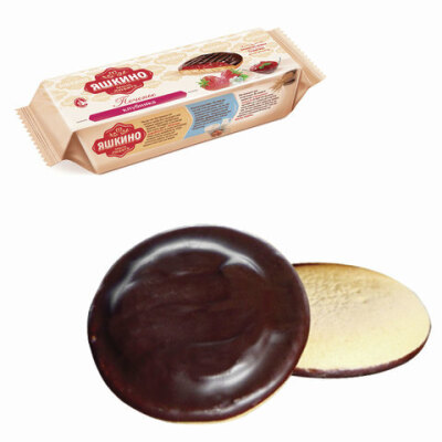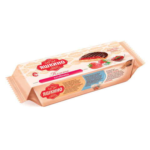 Печенье ЯШКИНО "Клубника", сдобное, с бисквитом, джемом и шоколадной глазурью, 137 г, ЯП208