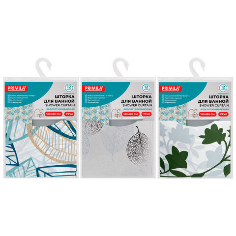 Шторка для ванной PEVA, 180х180 см, кольца в комплекте, 3 дизайна ассорти, РАСТЕНИЯ, PRIMILA (ПРИМИЛА), 700076