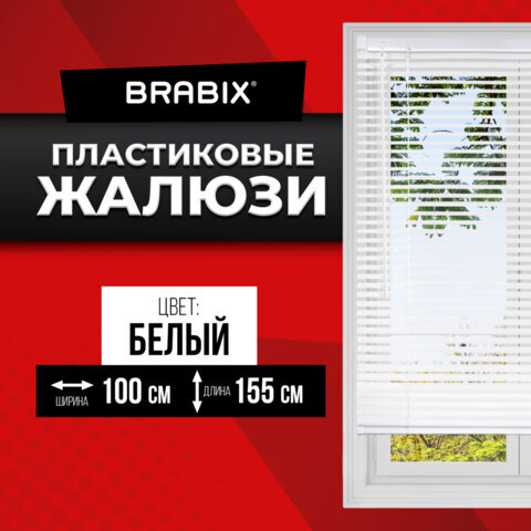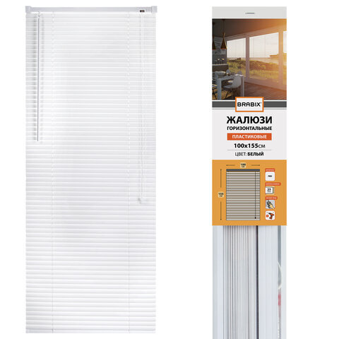 Жалюзи горизонтальные BRABIX 100х155 см, ПЛАСТИК, цвет белый, 606027