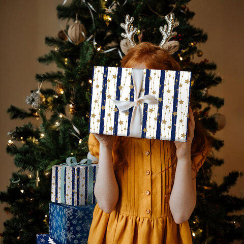 Набор упаковочной бумаги "Blue Collection" ЗОЛОТАЯ СКАЗКА отлично подходит для упаковки подарков, а также для рукоделия, декора и других дизайнерских решений.