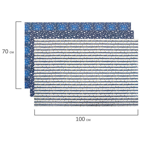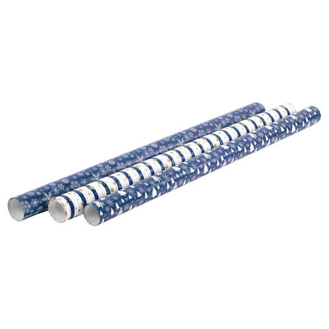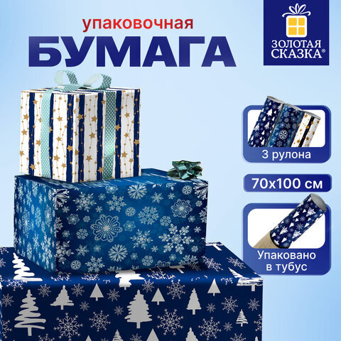 Бумага упаковочная новогодняя НАБОР 3 шт., "Blue Collection", 70х100 см, 3 дизайна, ЗОЛОТАЯ СКАЗКА, 592058