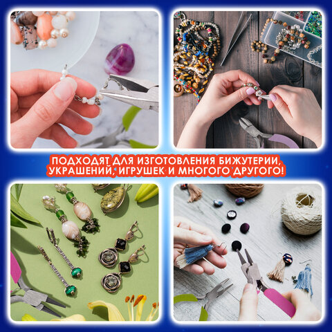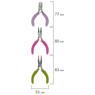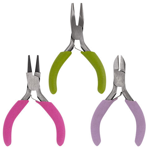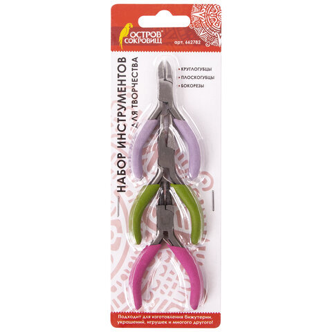 Набор из трёх инструментов ОСТРОВ СОКРОВИЩ включает в себя круглогубцы, плоскогубцы и бокорезы, предназначенные для использования в творчестве, создании бижутерии, игрушек и других изделий своими руками.