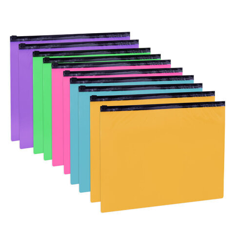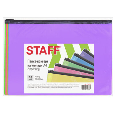 Папка-конверт на молнии А4 (230х333 мм), ПВХ, цвет ассорти/прозрачная, 0,15 мм, STAFF, 274076
