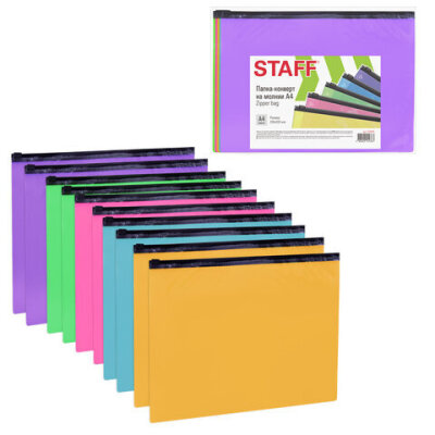 Папка-конверт на молнии STAFF идеально подойдет для хранения и транспортировки документов.