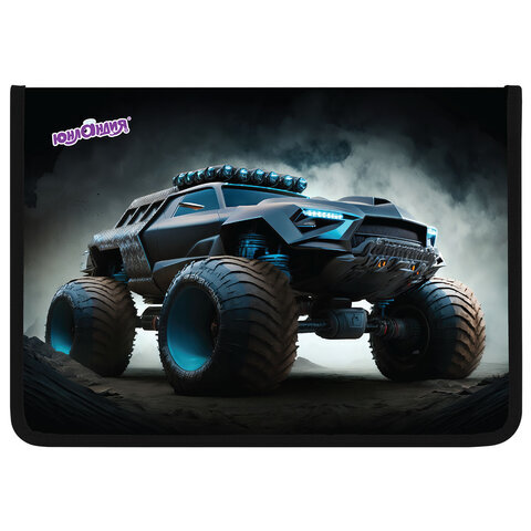 Папка для труда на молнии ЮНЛАНДИЯ А4, 1 отделение, откидная планка, органайзер, "Space driver", 273396