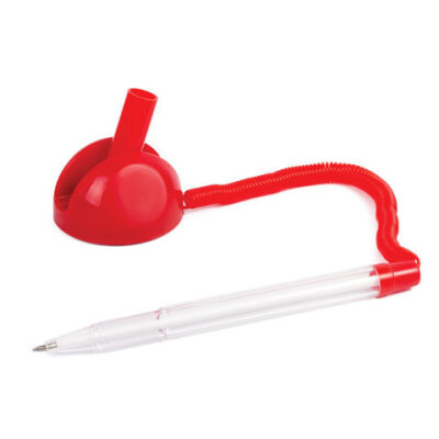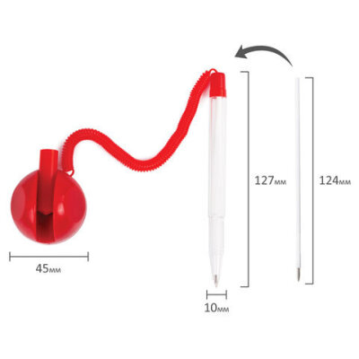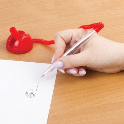 Ручка шариковая настольная BRAUBERG "Стенд-Пен", СИНЯЯ, пружинка, корпус красный, линия письма 0,5 мм, 141349