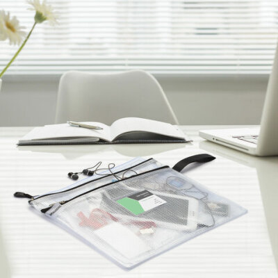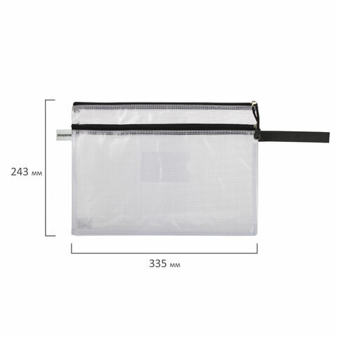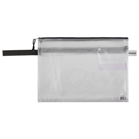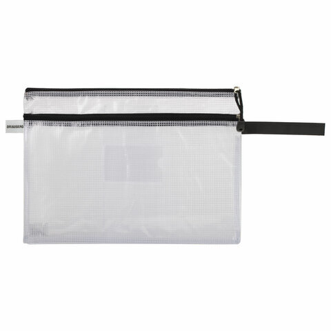 Папка-конверт на молнии А4 (335х243 мм), 2 отделения, ПВХ, прозрачная, 0,3 мм, BRAUBERG "Solid", 223889