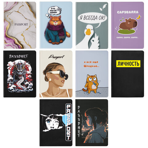 Обложка для паспорта "Cool Mix", два кармана, 10 дизайнов ассорти, цветной принт, ПВХ, STAFF, 238340