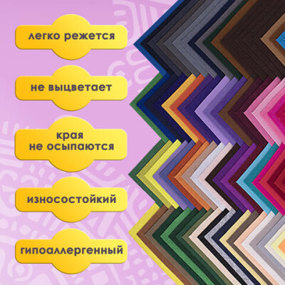 Фетр мягкий А4, 1 мм, 105 листов, 105 цветов, плотность 160 г/м2, МЯГКИЙ, ОСТРОВ СОКРОВИЩ, 665474