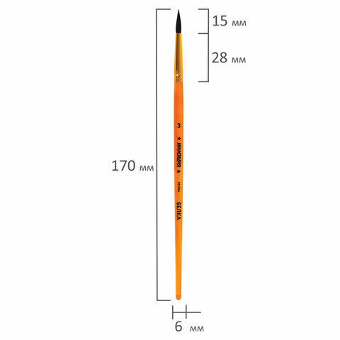 Кисть БЕЛКА, круглая, № 3, цветная ручка, ЮНЛАНДИЯ, 201054