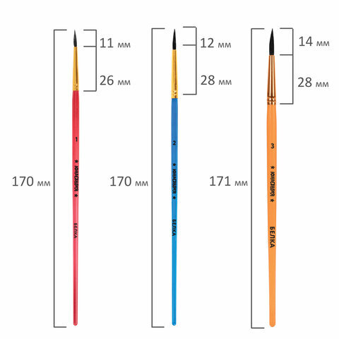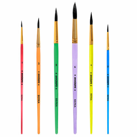 Кисти БЕЛКА набор 6 шт. (круглые № 1, 2, 3, 4, 5, 6), блистер, ЮНЛАНДИЯ, 201082