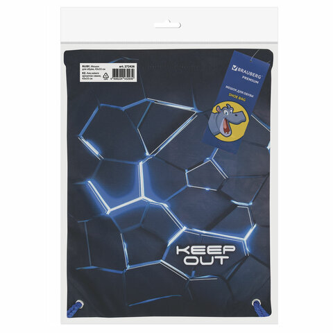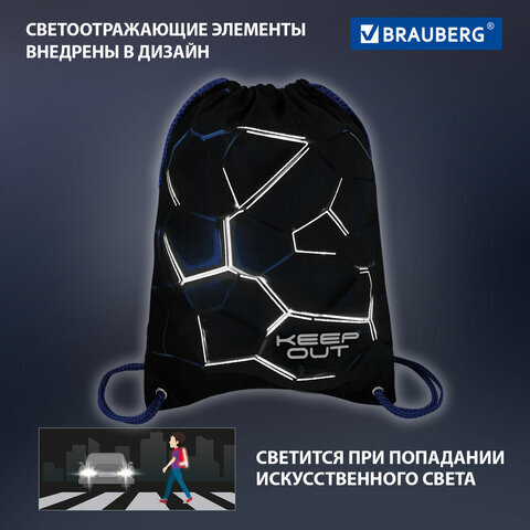 Мешок для обуви BRAUBERG PREMIUM, карман, подкладка, светоотражайка, 43х33 см, Digital lava, 272426