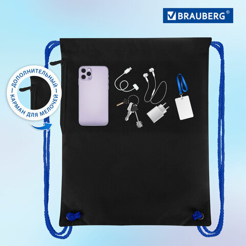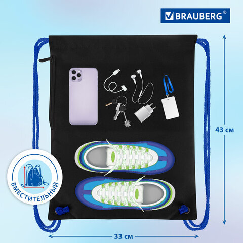 Мешок для обуви BRAUBERG PREMIUM – необходимый аксессуар в школе! Подходит для сменной обуви и спортивной формы. Затягивается двумя шнурками. Можно носить на плечах за спиной.