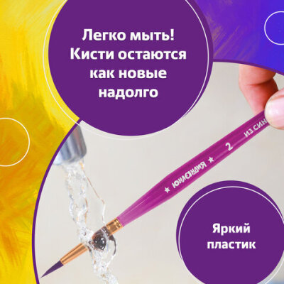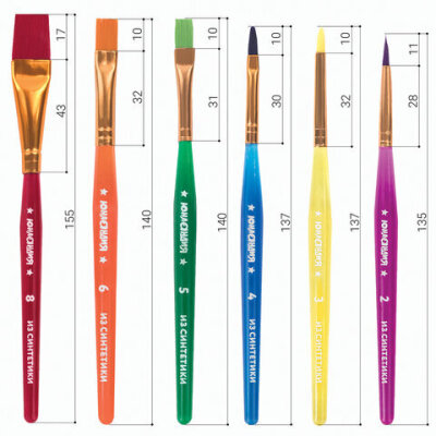 Набор из шести кистей разного размера ЮНЛАНДИЯ позволяет начинающим художникам решать любые творческие задачи в детском саду, школе и дома.
