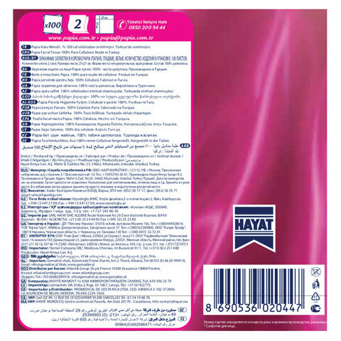 Салфетки косметические 100 штук в картонном боксе, 2-слойные, PAPIA, 5055478