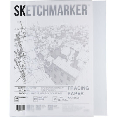 Калька А3 для печати и творчества, 90 г/м2, 250 листов, SKETCHMARKER, SM17310