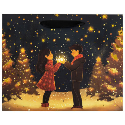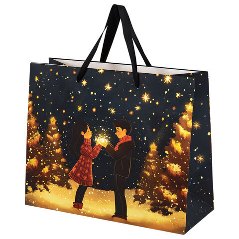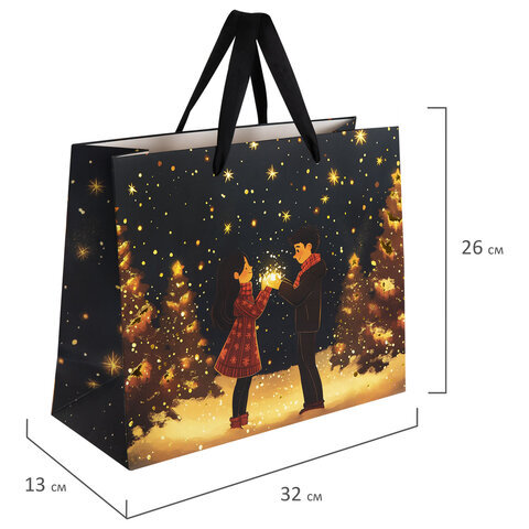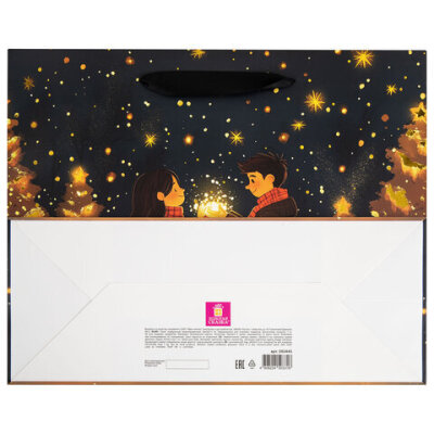 Подарочный пакет новогодний "Love story" ЗОЛОТАЯ СКАЗКА – отличное решение для упаковки любого презента, которое позволит с легкостью и со вкусом оформить выбранный подарок.