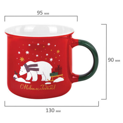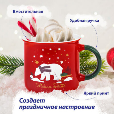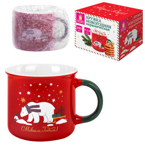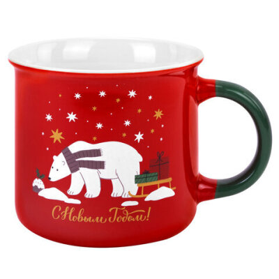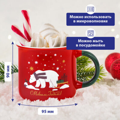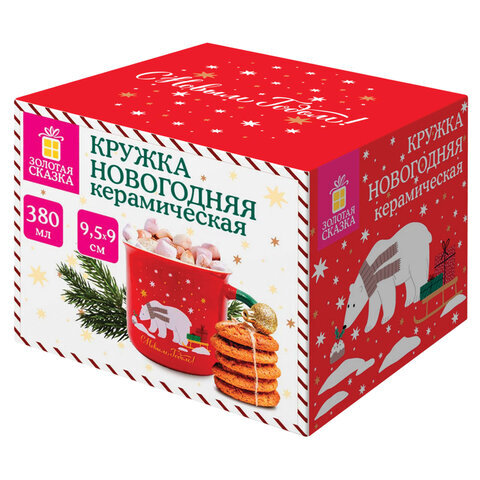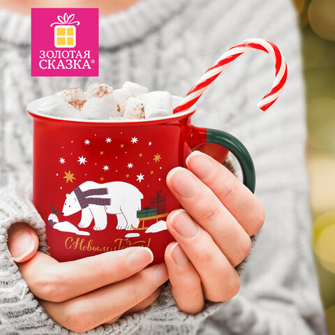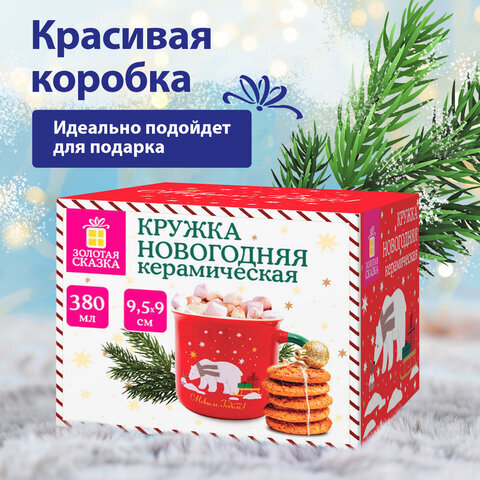Кружка новогодняя 380 мл, "Белый мишка", 9,5х9 см, каменная керамика, ЗОЛОТАЯ СКАЗКА, 592542