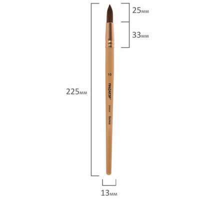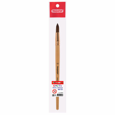 Кисть ПИФАГОР № 10 подходит для работы с акварелью, гуашью, тушью, а также для прорисовывания различных деталей рисунка. Снабжена защитным пластиковым колпачком.