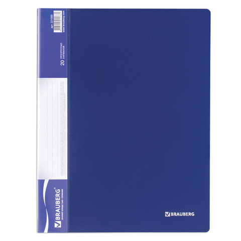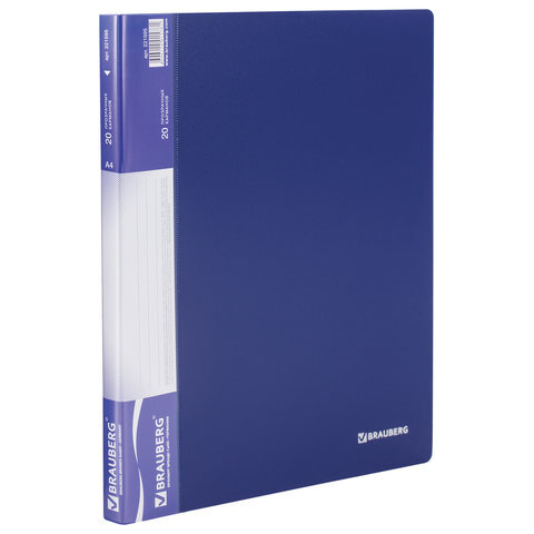 Папка 20 вкладышей BRAUBERG стандарт, синяя, 0,6 мм, 221595