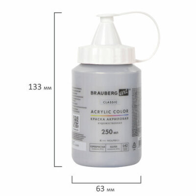 Краска акриловая художественная BRAUBERG ART CLASSIC, флакон 250 мл, СЕРЕБРИСТАЯ, 191715