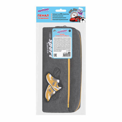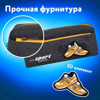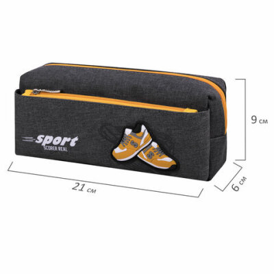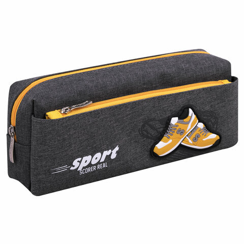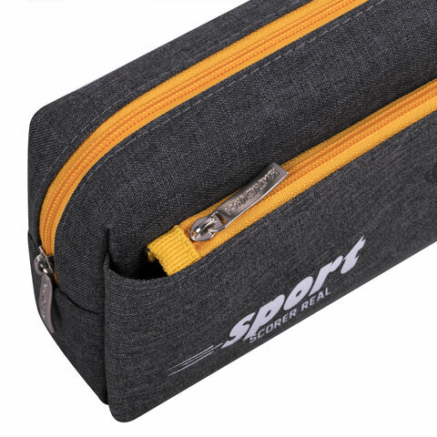 Пенал мягкий ЮНЛАНДИЯ, 2 отделения, полиэстер, "Sport scorer", серый, 20х9х6 см, 271575