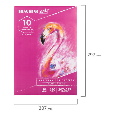 Альбом для пастели, картон ФУКСИЯ тонированный 630 г/м2, 207x297 мм, 10 л., BRAUBERG ART CLASSIC, 105921