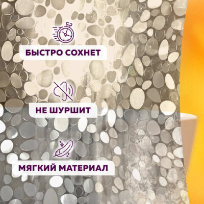 Штора для ванной комнаты WET STONES с 3D-эффектом водонепроницаемая, 180х180 см, LAIMA HOME, 608449