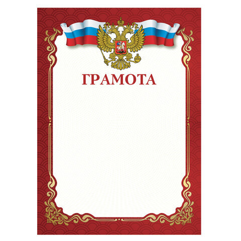 Грамота A4, мелованная бумага 115 г/м2, для лазерных принтеров, красная, STAFF, 111799